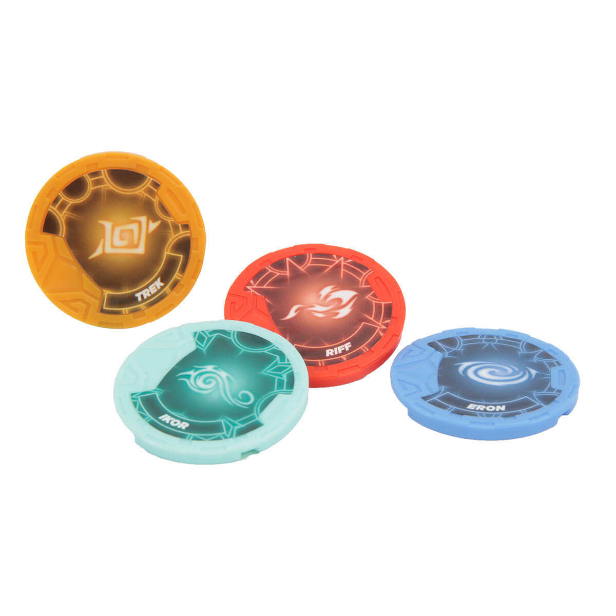 Compatibile con TUTTI i Token della linea giocattolo, il Bracciale ti permetterà di giocare ad evocare i Gormiti, proprio come i Guardiani nella serie animata! Ogni Token riproduce il nome e gli effetti d'attacco del tuo guerriero preferito. Con i 4 Token inclusi nella confezione, dedicati ai Guardiani, potrai attivare speciali funzioni dedicate.